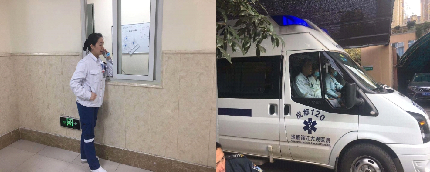 图一:急诊科护士长唐杨电话请求人力增援,第二辆救护车出诊。